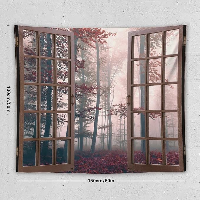 ZhiRain Nature Forest Tapestry Wall Hanging Autumn Mystic Foggy Fall Enchanted Woods Wild Trees Print Tapestries Home Decor for Living Room Bedroom Apartment Farmhouse Dorm 50"x60"