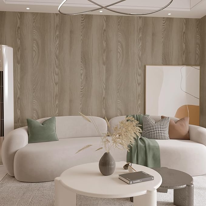- Self- Adhesive and Removable: Easy to install, homeowner and renter friendly light grey wood wall paper . A quick solution to upgrade old furniture wood oak roll wallpaper is prepasted no need extra glue. Can be removed easily without residue left. wood grain peel and stick wallpaper can be applied to most flat and dry surfaces