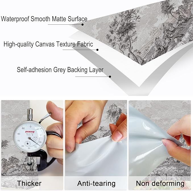 - Grey Backing Layer Covering Any Blemish: Add a grey layer on the back of the peel and stick wallpaper. It can cover flaws and colors of the wall. Transform any room in your home with a stunning wall mural