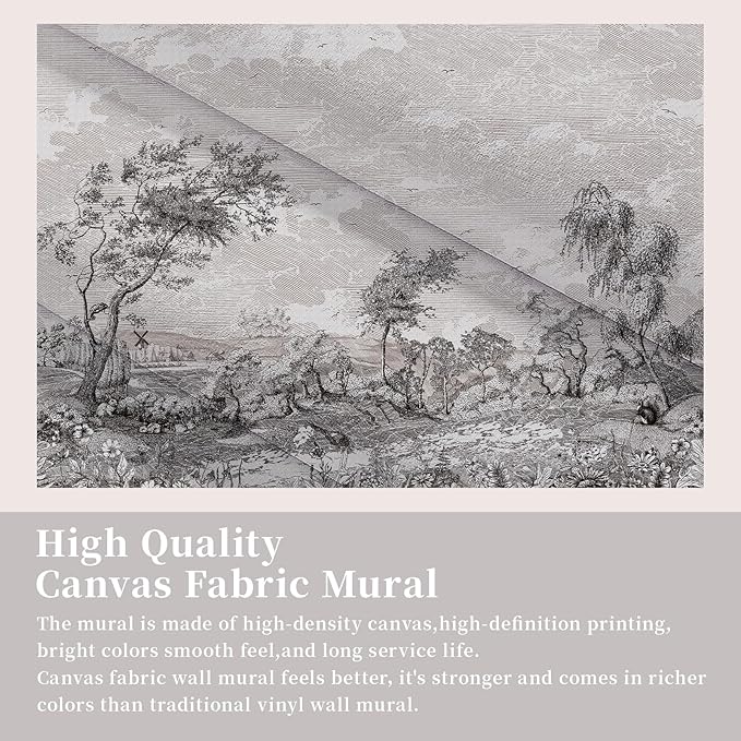 - Waterproof and Durable Canvas Fabric Material: The black and white countryside landscape mural is made of high-density canvas, high-definition printing, bright colors, smooth feel and long service life. Canvas fabric wall covering feels better, it's stronger and comes in richer colors than traditional vinyl wall mural
