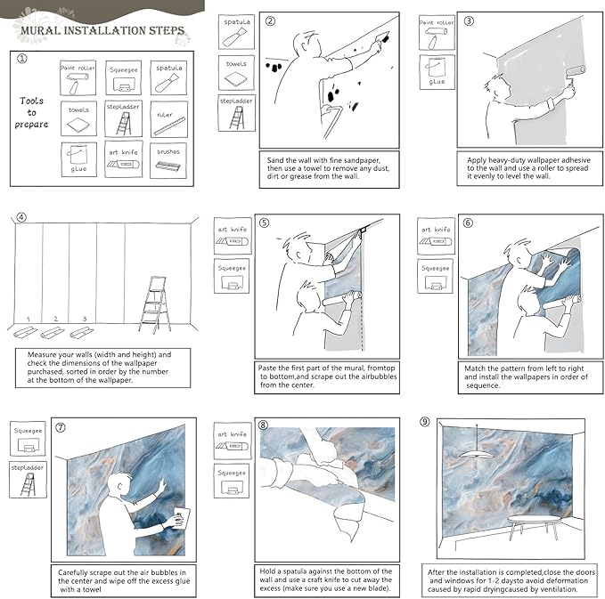 - Tips: Mural can not be peeled and pasted, you need to buy a heavy duty wallpaper glue