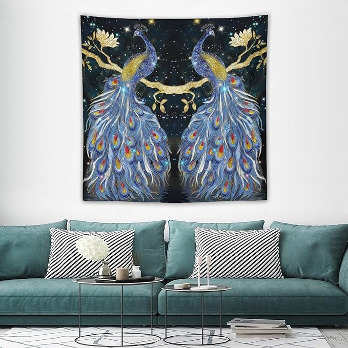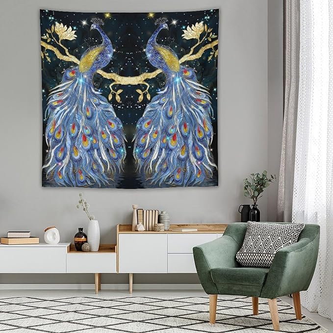 ZhiRain Elegant Peacock Tapestry Wall Hanging Exotic Fantastic Animal with Glitter Starry Sky Modern Tapestries Home Decor for Living Room Bedroom Farmhouse Apartment Dorm 60"x60"