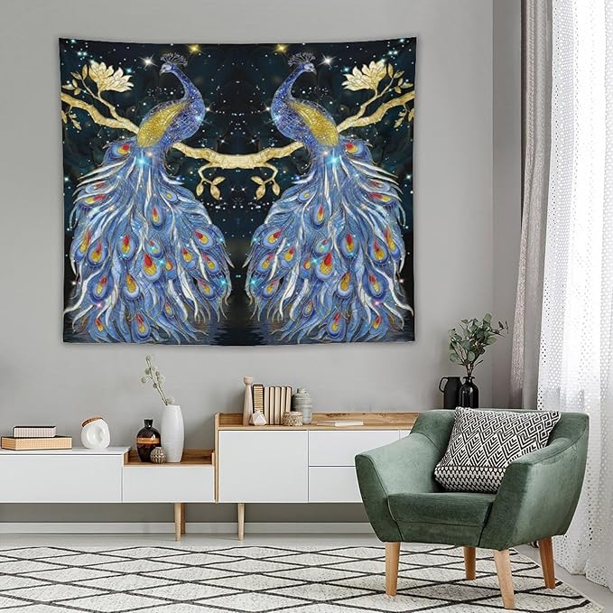 ZhiRain Elegant Peacock Tapestry Wall Hanging Exotic Fantastic Animal with Glitter Starry Sky Modern Tapestries Home Decor for Living Room Bedroom Farmhouse Apartment Dorm 50"x60"