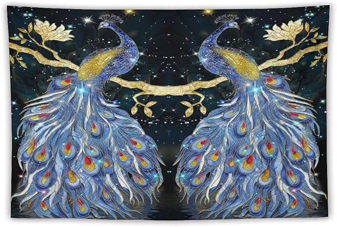 ZhiRain Elegant Peacock Tapestry Wall Hanging Exotic Fantastic Animal with Glitter Starry Sky Modern Tapestries Home Decor for Living Room Bedroom Farmhouse Apartment Dorm 40"x60"