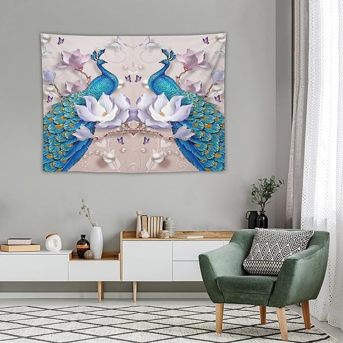 ZhiRain Peacock Tapestry Wall Hanging Beautiful Bird Flower Pearl Watercolor Pattern Print Tapestries Home Decor for Living Room Bedroom Farmhouse Apartment Dorm 30"x40"