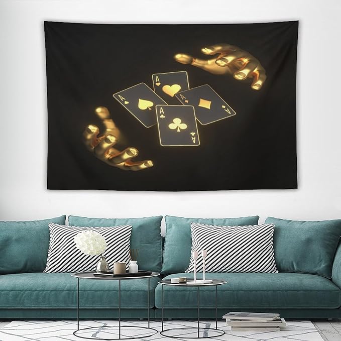 ZhiRain Poker Theme Tapestry Wall Hanging Modern Black Gold Playing Cards Art Printed Tapestries Home Decor for Living Room Bedroom Farmhouse Apartment Dorm 60"x90"