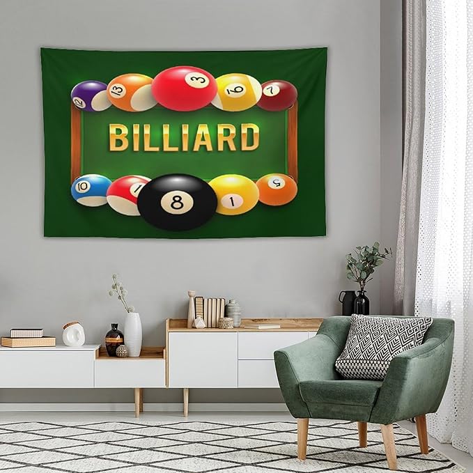 ZhiRain Snooker Billiards Tapestry Wall Hanging Modern Sports Theme Billiard Eight Ball Tapestries Home Decor for Living Room Bedroom Farmhouse Apartment Dorm 60"x90"