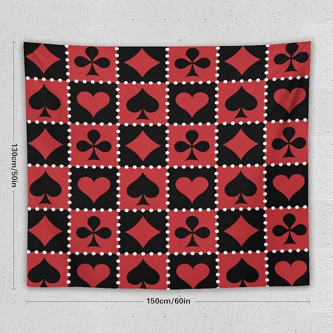 ZhiRain Casino Tapestry Wall Hanging Checkered Rhombus Pattern with Playing Card Gaming Club Theme Tapestries Home Decor for Living Room Bedroom Farmhouse Apartment Dorm 50"x60"