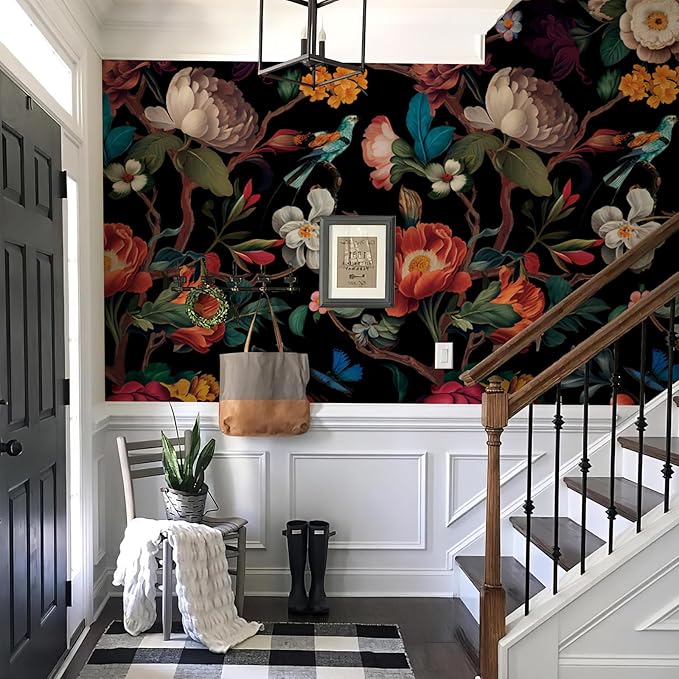 Zeeko Black Floral Mural Peel and Stick Wallpaper Removable Vintage Wallpaper Large Art Decor for Bedroom Livingroom Home 118'' x 65''
