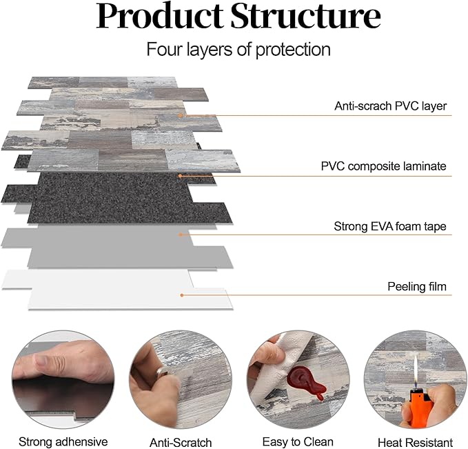 - √Real Texture - Each individual Peel and stick backsplash with various realistic distressed wood texture and color, completing a perfect project with rich texture and retro effect.