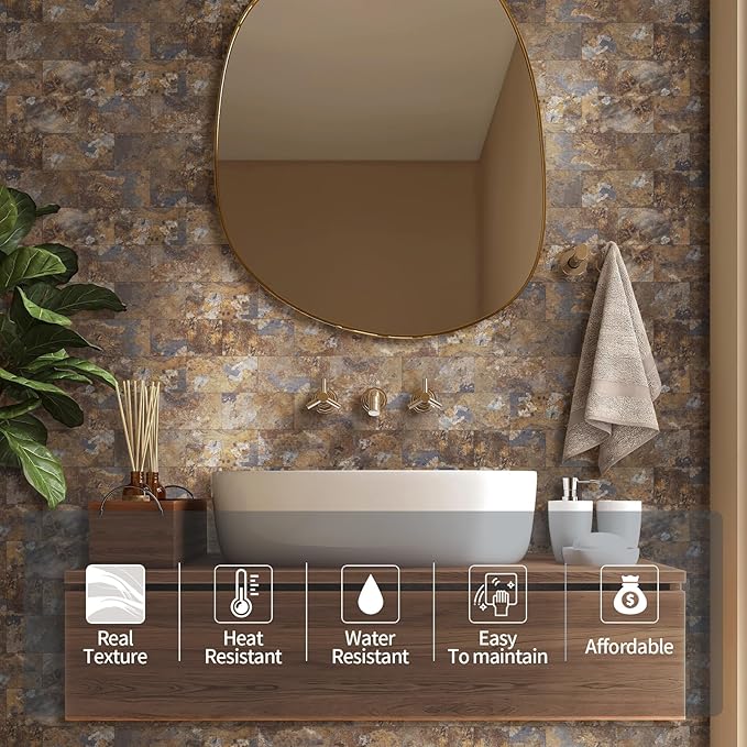 Yipscazo Peel and Stick backsplash 3 x 6 Inches 3D PVC Composite Wall Tile Stick on Backsplash Tile for Kitchen Bathroom, Laundry Room, Fireplace(Brown Stone, 160 Pieces)
