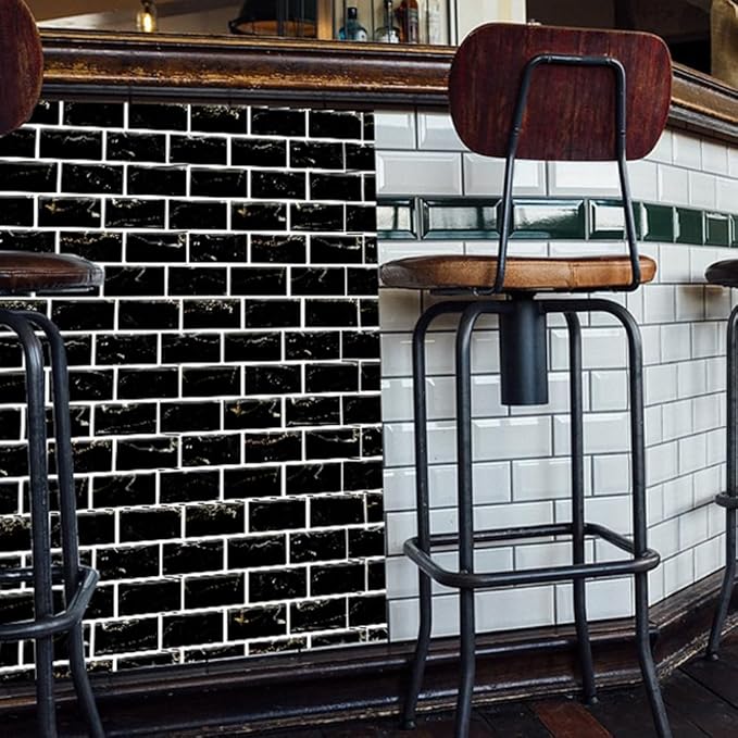 3D Wall Panels,3D Brick Wallpaper Peel and Stick,Faux Brick Wall Panel,10PCS of 11.8" x 11.8" Black Brick Wallpaper Stick on Tile for Kitchen, Bedroom, Living Room,TV Background.