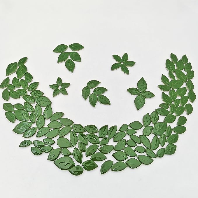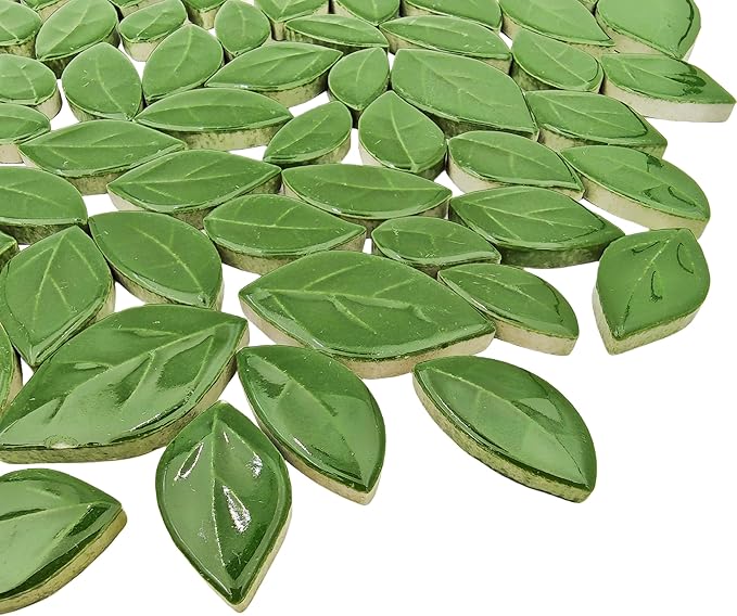 500g/1.1lb Leaf-Shaped Ceramic Mosaic Tiles,Ceramic Mosaic Pieces for Crafts,Mosaic Tiles for Home Decoration or DIY Crafts,Mosaic Making Supplies. (Dark Green)