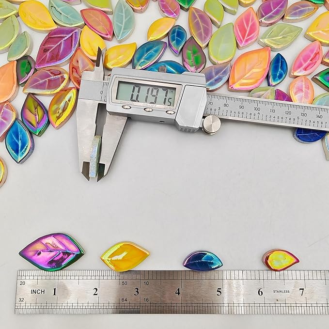 500g/1.1lb Leaf-Shaped Ceramic Mosaic Tiles,Ceramic Mosaic Pieces for Crafts,Mosaic Tiles for Home Decoration or DIY Crafts,Mosaic Making Supplies. (Iridescent Mixed Color)