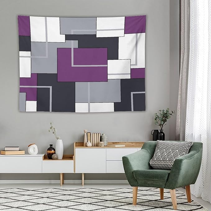 ZhiRain Purple Black White Tapestry Wall Hanging Modern Gray Geometric Abstract Aesthetic Tapestries Home Decor for Living Room Bedroom Farmhouse Apartment Dorm 60"x80"