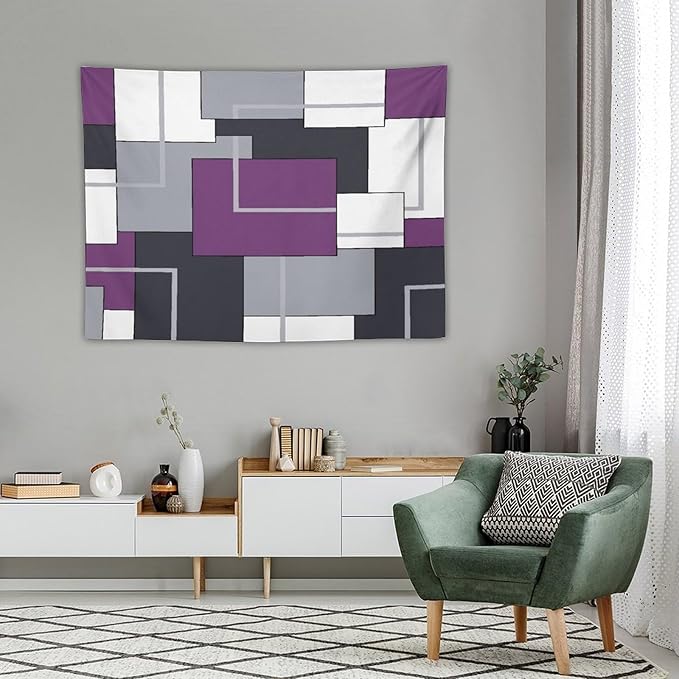 ZhiRain Purple Black White Tapestry Wall Hanging Modern Gray Geometric Abstract Aesthetic Tapestries Home Decor for Living Room Bedroom Farmhouse Apartment Dorm 30"x40"