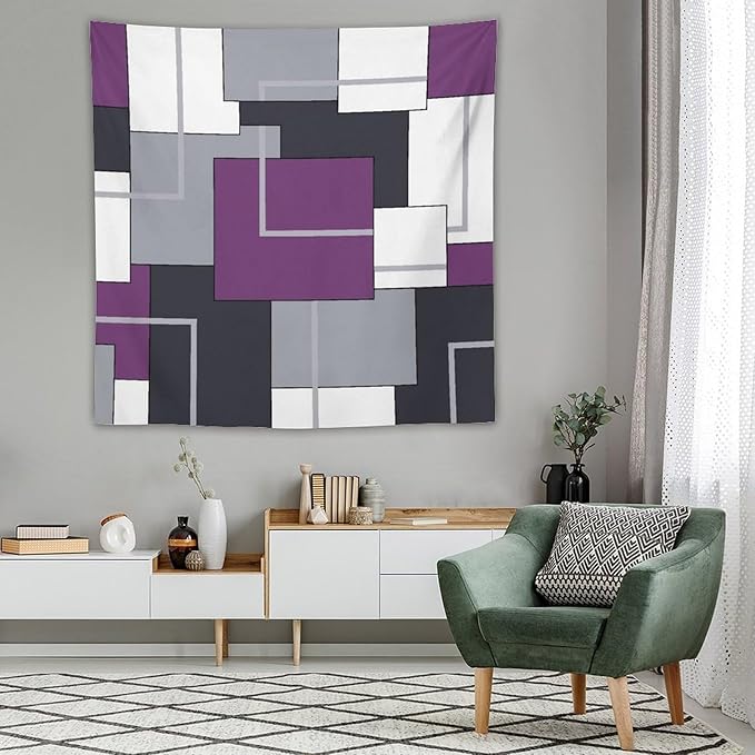 ZhiRain Purple Black White Tapestry Wall Hanging Modern Gray Geometric Abstract Aesthetic Tapestries Home Decor for Living Room Bedroom Farmhouse Apartment Dorm 60"x60"
