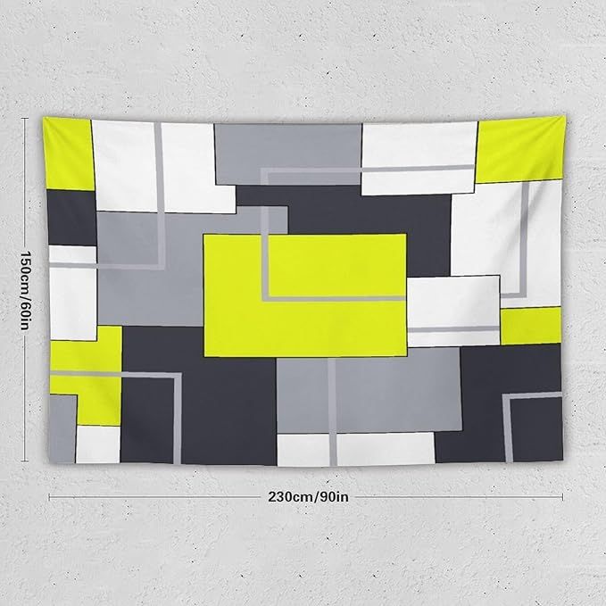 ZhiRain Yellow Gray Tapestry Wall Hanging Modern Black White Geometric Abstract Aesthetic Tapestries Home Decor for Living Room Bedroom Farmhouse Apartment Dorm 60"x90"