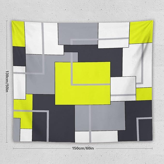 ZhiRain Yellow Gray Tapestry Wall Hanging Modern Black White Geometric Abstract Aesthetic Tapestries Home Decor for Living Room Bedroom Farmhouse Apartment Dorm 50"x60"
