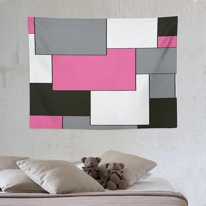 ZhiRain Modern Pink Tapestry Wall Hanging Pink And Gray Black Tapestries Home Decor for Living Room Bedroom Farmhouse Apartment Dorm 30"x40"