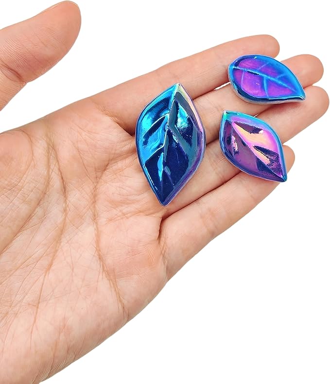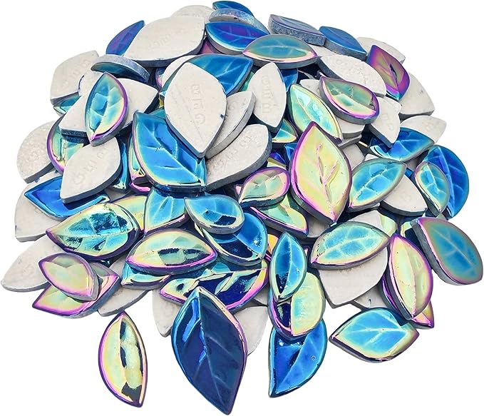 500g/1.1lb Leaf-Shaped Ceramic Mosaic Tiles,Ceramic Mosaic Pieces for Crafts,Mosaic Tiles for Home Decoration or DIY Crafts,Mosaic Making Supplies. (Iridescent Royal Blue)