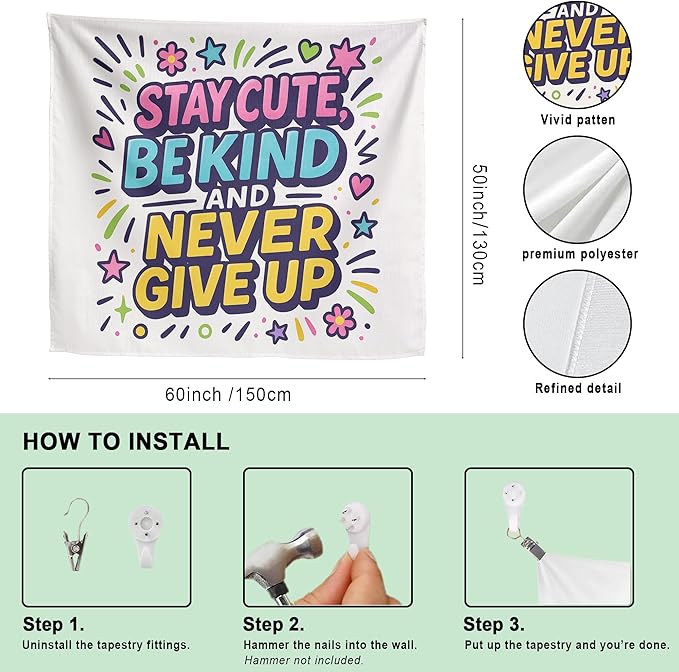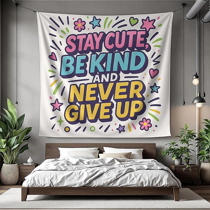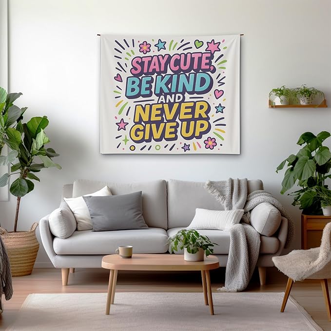 Xolytar Preppy Y2K Tapestry Stay Cute Be Kind - Funky Colorful Doodle Aesthetic, Cute Motivational Quote Wall Art for Teen Girls Bedroom, Indie Kid Dorm Decor (50x60)