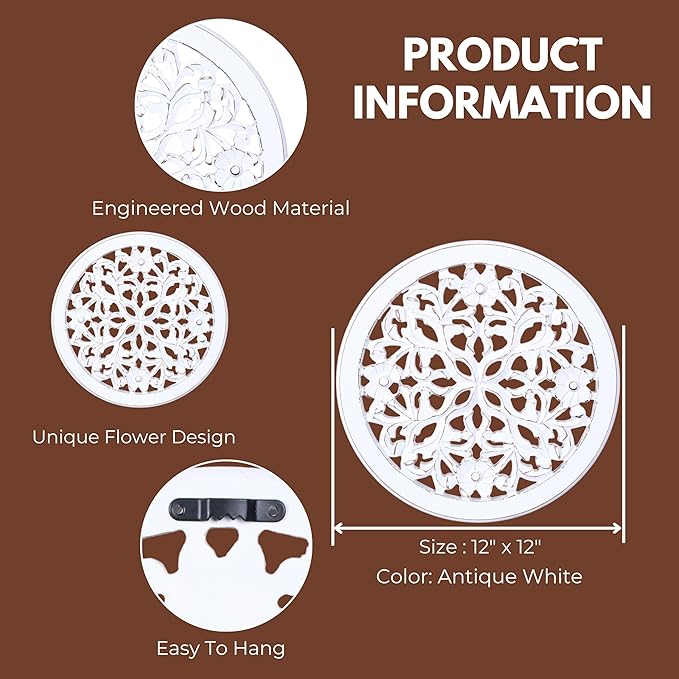 - HANDCRAFTED WOODEN WALL ART: Each wall panel is skillfully hand-carved by artisans using solid wood with intricate detailing, White antique for a timeless decorative look.