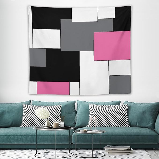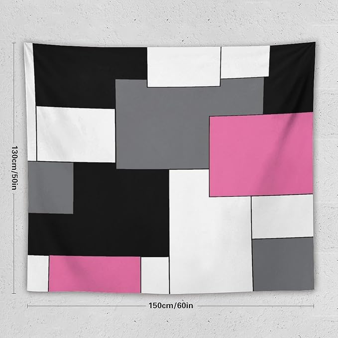 ZhiRain Pink,Black,White,Grey Tapestry Wall Hanging Geometry Pattern Digital Print Multicolor Tapestries Home Decor for Living Room Bedroom Farmhouse Apartment Dorm 50"x60"