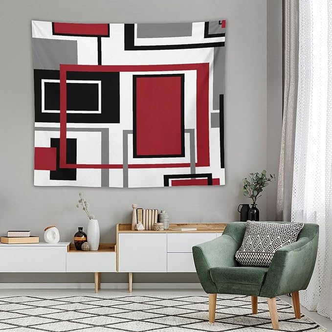 ZhiRain Red Modern Tapestry Wall Hanging Red Geometric Gray Black And Red Tapestries Home Decor for Living Room Bedroom Farmhouse Apartment Dorm 50"x60"