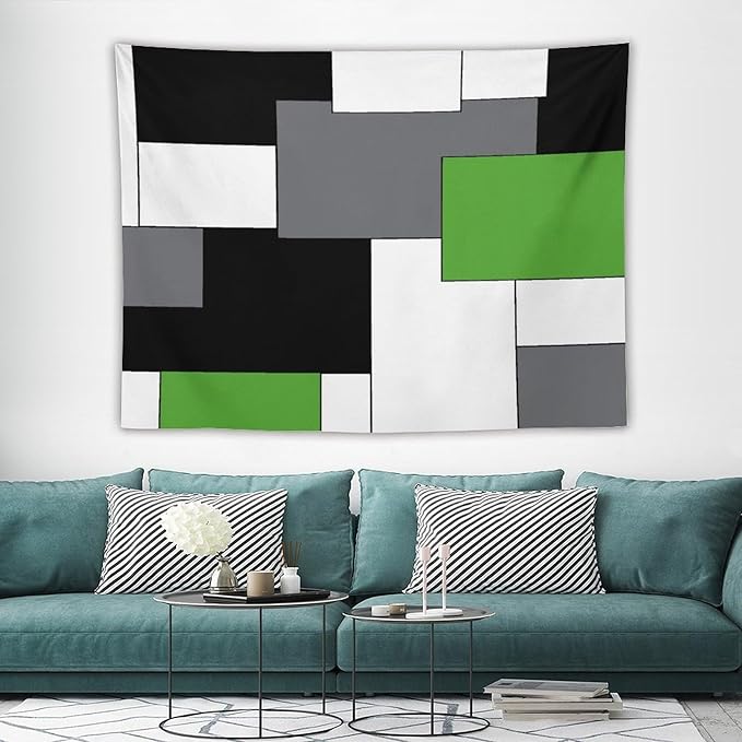 ZhiRain Black,Grey,Green,White Tapestry Wall Hanging Geometry Pattern Digital Print Multicolor Tapestries Home Decor for Living Room Bedroom Farmhouse Apartment Dorm 60"x80"