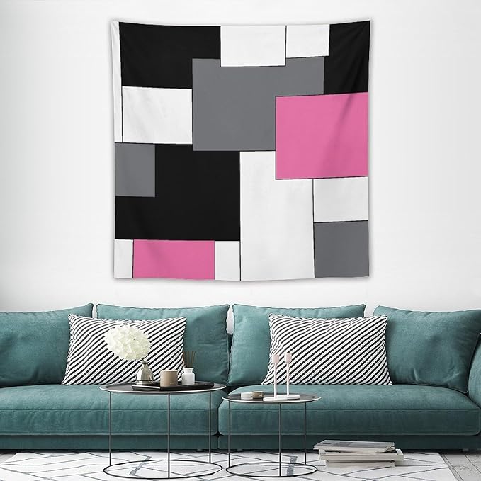 ZhiRain Pink,Black,White,Grey Tapestry Wall Hanging Geometry Pattern Digital Print Multicolor Tapestries Home Decor for Living Room Bedroom Farmhouse Apartment Dorm 60"x60"