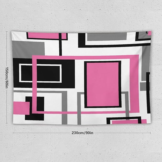 ZhiRain Modern Pink Tapestry Wall Hanging Geometric Pink Gray Black Tapestries Home Decor for Living Room Bedroom Farmhouse Apartment Dorm 60"x90"