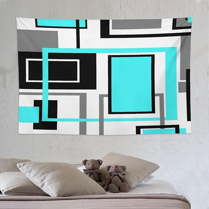 ZhiRain Modern Geometric Blue Tapestry Wall Hanging Blue Black And Gray Tapestries Home Decor for Living Room Bedroom Farmhouse Apartment Dorm 60"x90"