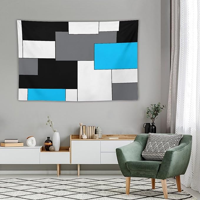 ZhiRain Black,Grey,Sky Blue,White Tapestry Wall Hanging Geometry Pattern Digital Print Multicolor Tapestries Home Decor for Living Room Bedroom Farmhouse Apartment Dorm 60"x90"