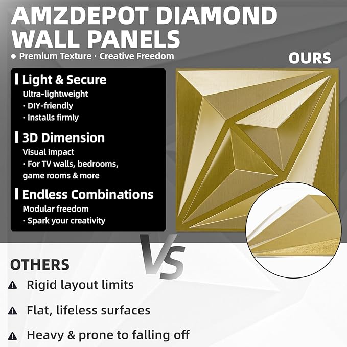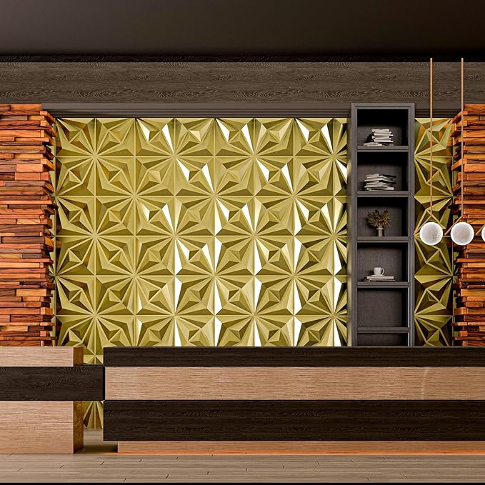 AMZDEPOT 3D Wall Panels for Interior Wall Decor, 3 Layout Options PVC Textured Wall Art Decor for Living Room Bedroom TV Background Gaming Room, 12''x12'', 20 Pcs Gold