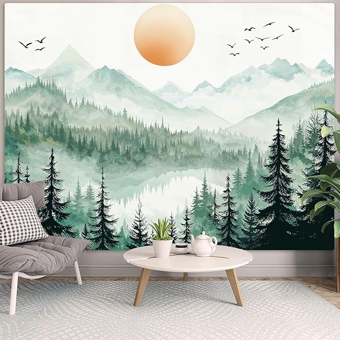 - Effortless Care: This forest mountain tapestry is easy to machine wash and can be ironed at low temperatures, the fabric of this tapestry retains its brilliance and charm after multiple washes, offering hassle-free maintenance