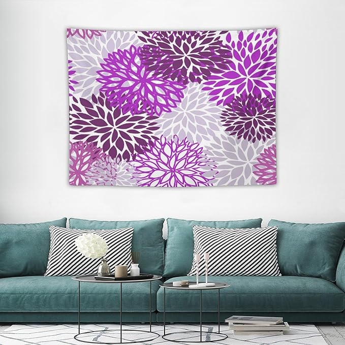ZhiRain Dahlia Flower Tapestry Wall Hanging Purple Abstract Floral Chrisanthemum Pattern Tapestries Home Decor for Living Room Bedroom Farmhouse Apartment Dorm 30"x40"
