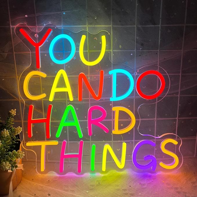 - 【Unique Design】Our "You Can Do Hard Things" neon sign is thoughtfully crafted from flexible LED neon strips, carefully shaped into stylish English letters. This modern and inspiring piece of wall art is perfect for classrooms, offices, or any space in need of a lively touch—it brings energy and motivation to any room.