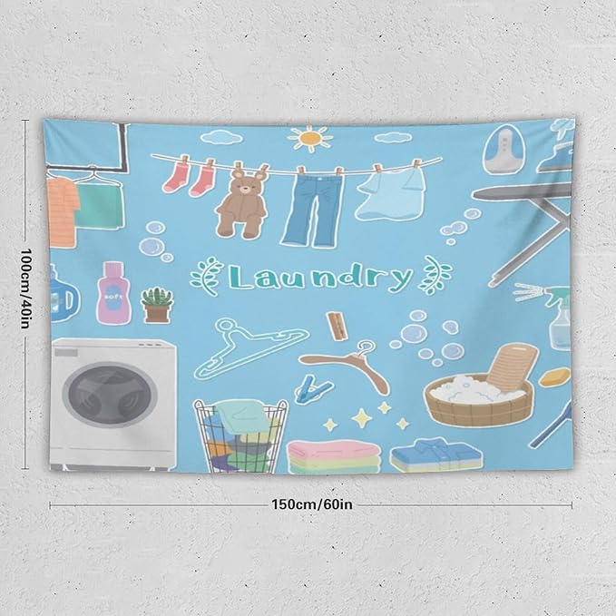 ZhiRain Laundry Room Tapestry Wall Hanging Vintage Funny Farmhouse Rustic Tapestries Home Decor for Living Room Bedroom Farmhouse Apartment Dorm 40"x60"