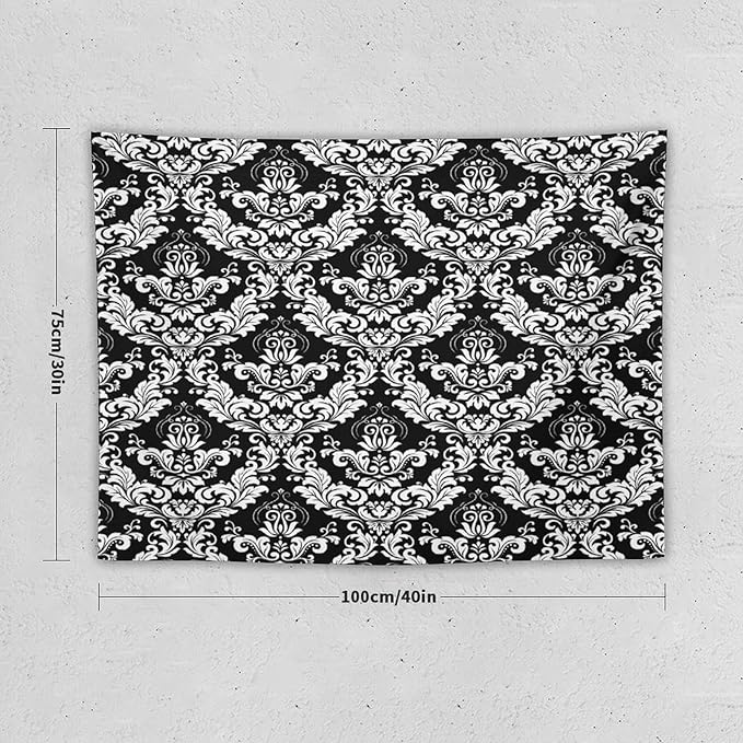ZhiRain Damask Floral Tapestry Wall Hanging Gothic Vintage Retro Antique Baroque Classic Floral Pattern Tapestries Home Decor for Living Room Bedroom Farmhouse Apartment Dorm 30"x40"