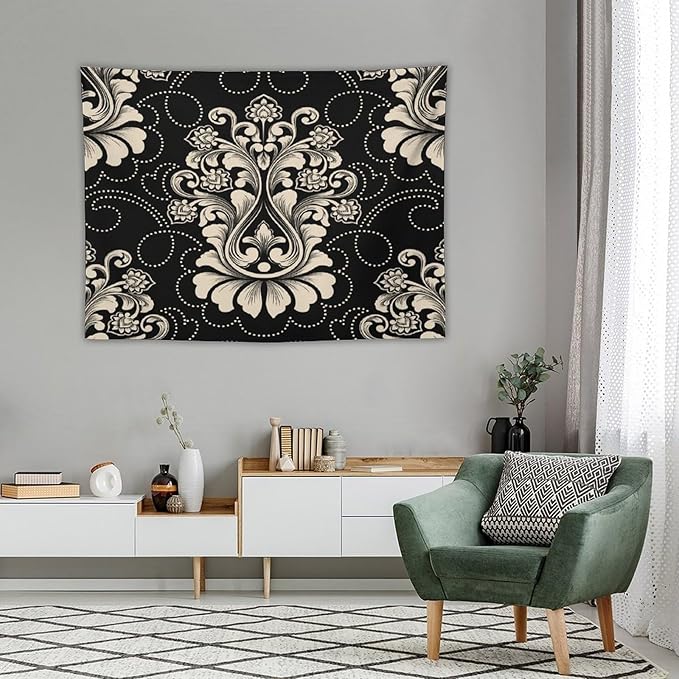 ZhiRain Damask Tapestry Wall Hanging Vintage Antique Baroque Classic Floral Elegant Chic Flower Tapestries Home Decor for Living Room Bedroom Farmhouse Apartment Dorm 30"x40"