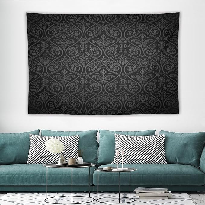 ZhiRain Damask Tapestry Wall Hanging Antique Baroque Pattern with Mild Ombre Shade Gothic Victorian Style Tapestries Home Decor for Living Room Bedroom Farmhouse Apartment Dorm 60"x90"