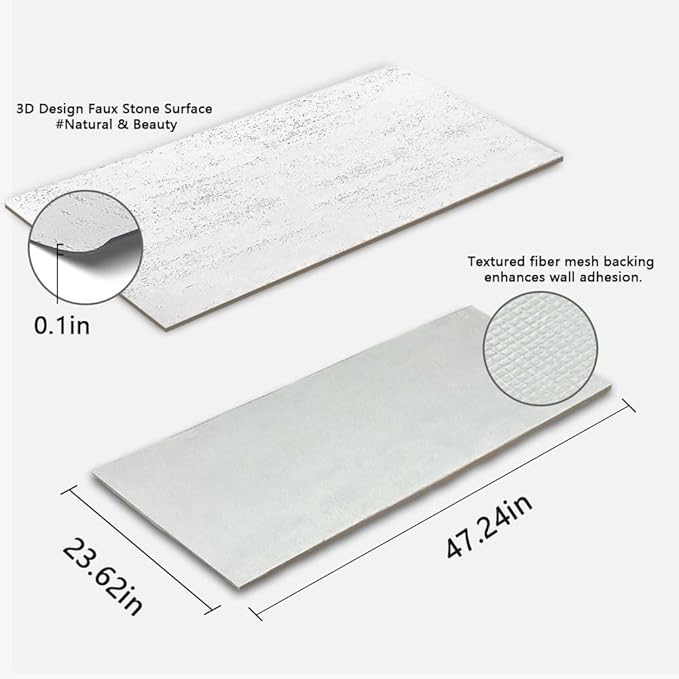 3D Wall Panels Faux Stone Wall Panel for Exterior/Interior Wall, MCM Walls Natural 4PCS 47.2"x23.6" / 30.94 sq ft (Travertine Stone White)