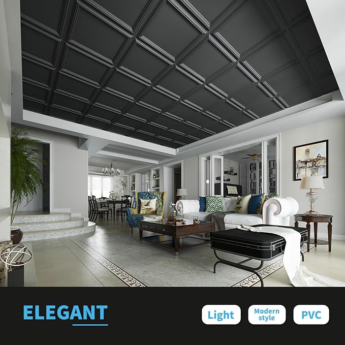 - Durable & Lightweight - The tiles are made from lightweight, yet durable PVC material, ideal for ceiling applications in kitchens, offices, and more