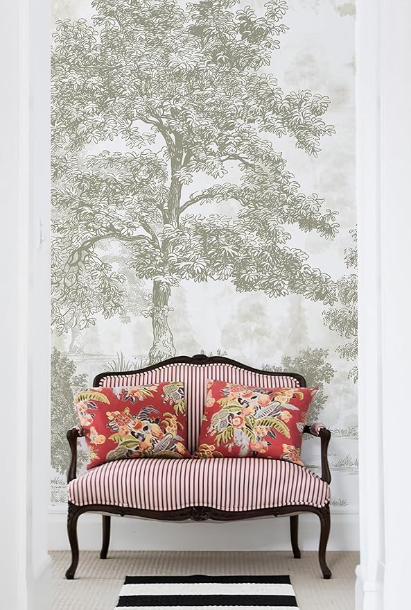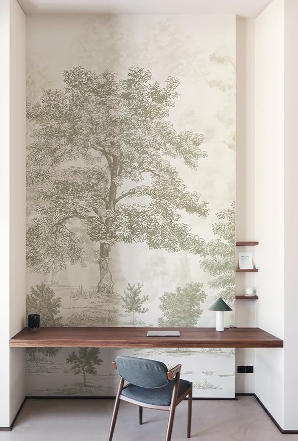 Zeeko Vintage Forest Wall Mural Peel and Stick 59" W x 110" H Beige Tree Wallpaper Self-Adhesive Large Nature Landscapes Murals Canvas Wall Decor
