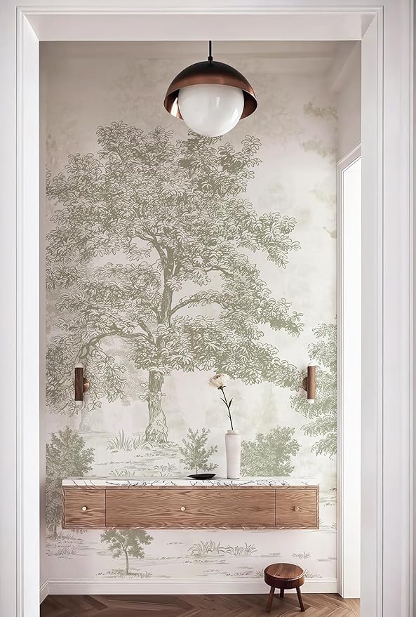 - Peel and Stick Foggy Forest Wall Mural & Pattern Match:Different form traditional tree wallpaper mural, don't need any wallpaper paste, Just peel and stick. The cloth will not be deformed or stretched by the environment, nice match the patterns.