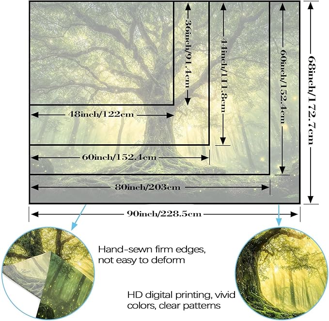 - Multi-Functional Use: Ideal for multiple uses: as a wall tapestry in nature-themed bedrooms, a bedspread for bedroom tapestry flair, a picnic blanket, or a photo backdrop—merging forest charm and fantasy style for endless functionality