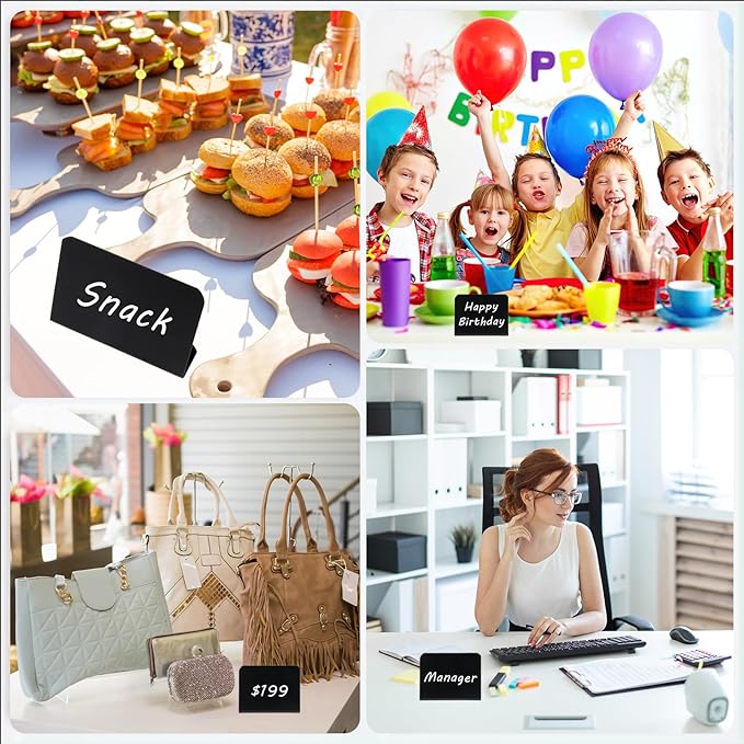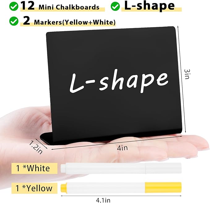 - Just Unbox & Display: Include 12 mini chalkboard signs (4"x3") and 2 vibrant liquid chalk markers, these signs are designed to stand on their own, no assembly, no extra stands or easels required