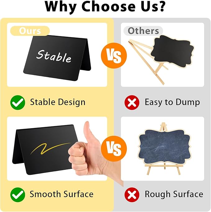 - Just Unbox & Display: Include 12 mini chalkboard signs (4"x3") and 2 vibrant liquid chalk markers, these signs are designed to stand on their own, no assembly, no extra stands or easels required