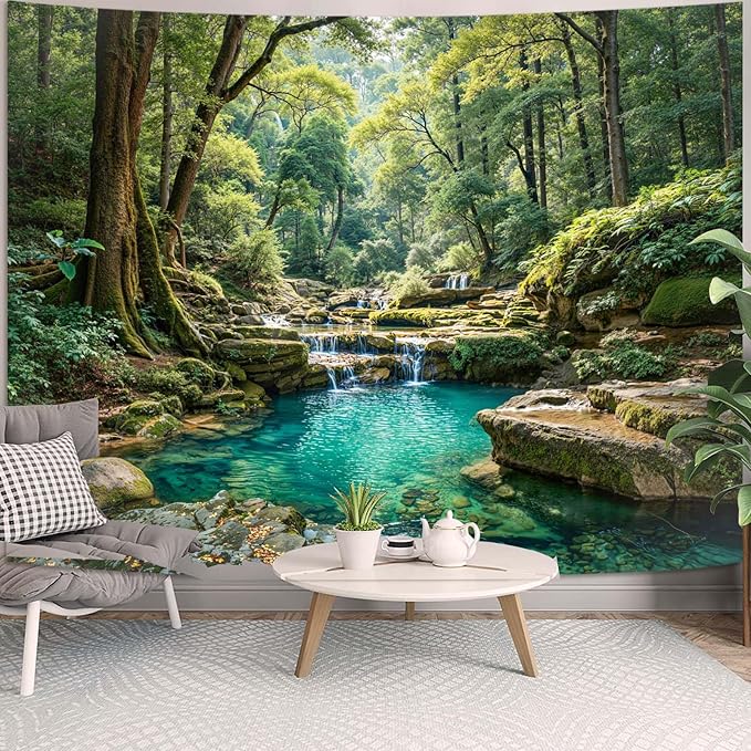 Zussun Nature Forest Tapestry Green Tree Wall Tapestry for Bedroom Aesthetic Plant Stream Pool Landscape Large Tapestries Wall Hanging for Dorm Living Room Decor 90 x 68 Inch